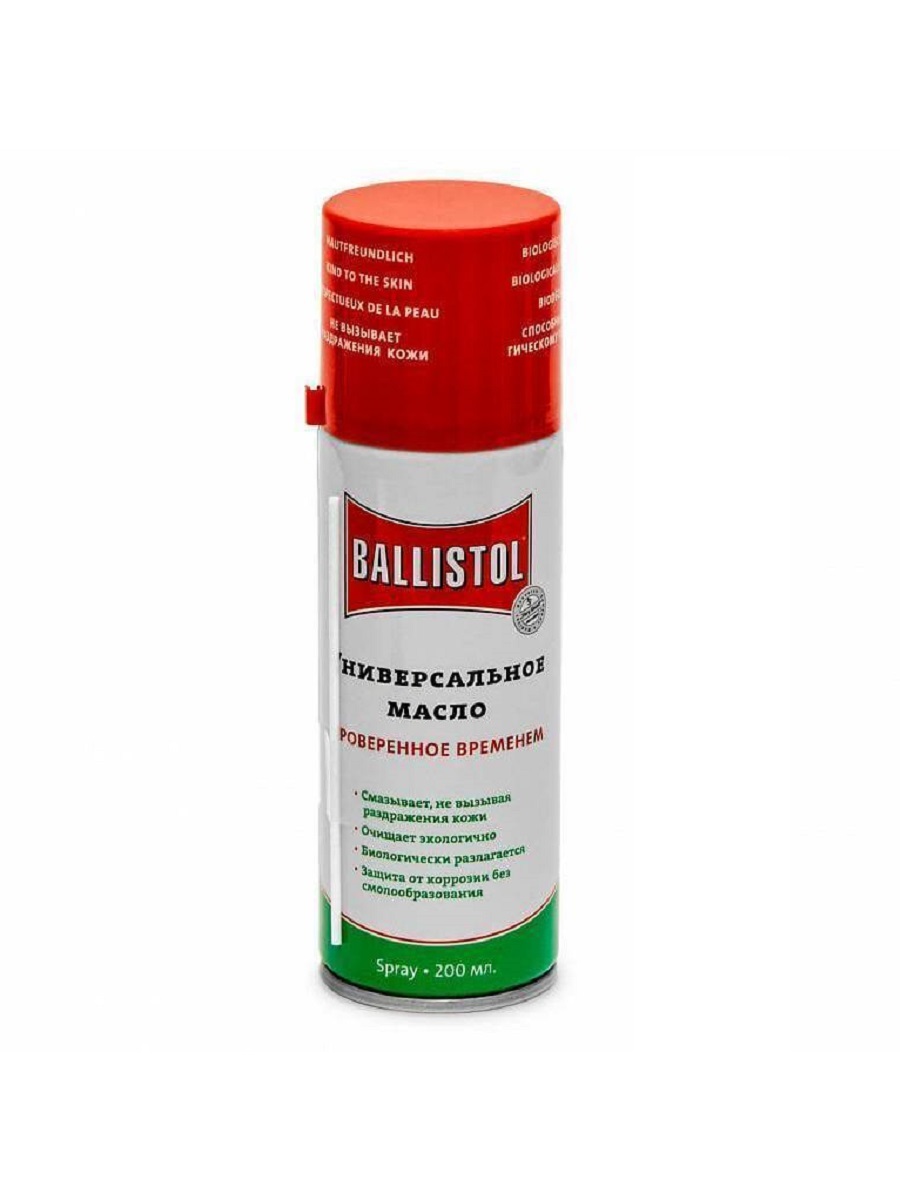 Универсальное оружейное масло Ballistol 200мл. Многоцелевое масло Баллистол в жидком виде или аэрозольном баллончике. Универсальное средство для защиты и ухода за всеми материалами (пластик, металл, кожа, дерево, резина и др.). Отлично чистит оружие, растворяя старые загрязнения и удаляя медный и свинцовый налет, томпак. Незаменимо на охоте, в тире, в доме, в любой сфере хозяйственной деятельности. Идеально походит для ухода за древесиной, предотвращает замерзание металлических замков и примерзание резинок-уплотнителей. Состав масла обладает антисептическим свойствам, способно заживлять укусы насекомых, порезы, ссадины. В составе только природные и натуральные компоненты.